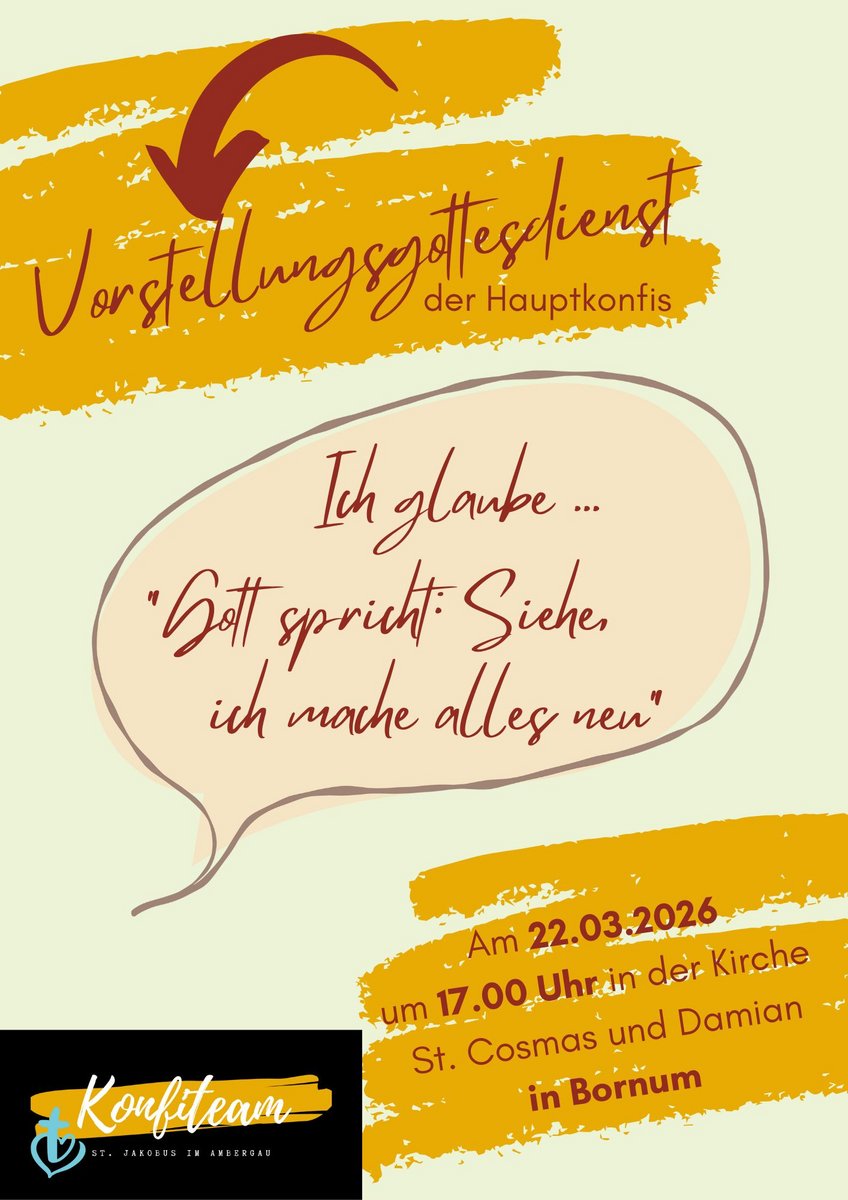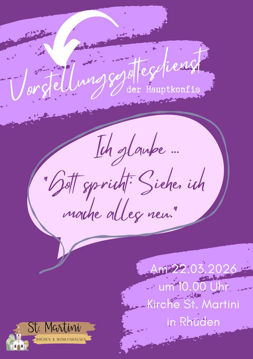 Der erste einjährige Konfi-Jahrgang endet im April / Mai mit den Konfirmationen. Bei den letzten Konfi-Treffen am 14. und 15.3.2026 haben die Konfis ihre Vorstellungsgottesdienste vorbereitet, die wir am 22.3. um 10:00 Uhr in Rhüden und um 17:00 Uhr in Bornum feiern werden.