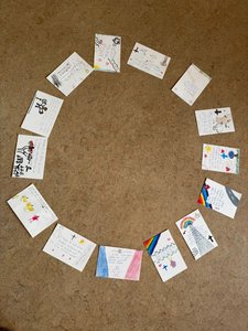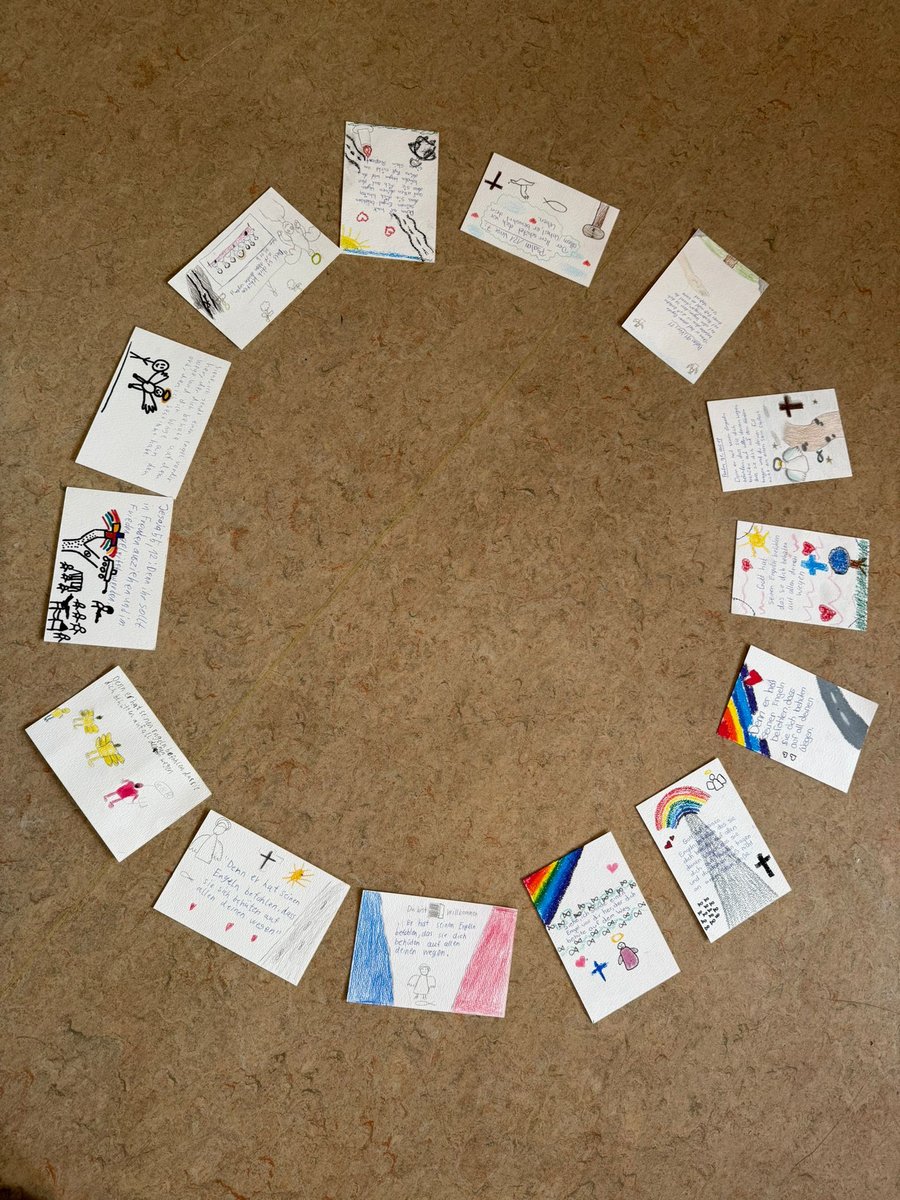 Im September waren die beiden Sakramente Taufe und Abendmahl Thema. Dazu haben wir uns damit beschäftigt, was zur Taufe dazugehört und warum wir eigentlich taufen. Die Konfis hatten zuhause ihren Taufspruch rausgesucht bzw. erfragt und dazu eine Taufspruch-Werbekarte erstellt. In der Kirche haben alle überlegt, wo der passende Ort für den eigenen Taufspruch sein könnte. Jede*r hat eine Fürbitte zur Taufe geschrieben. Zum Abendmahl haben wir überlegt, warum es ein Festessen ist und was alles dazugehört. Auf der Konfifreizeit werden wir dann gemeinsam Abendmahl feiern.